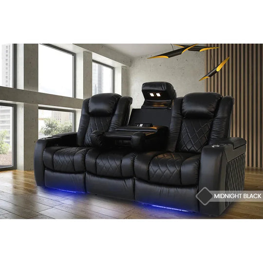 Valencia Tuscany Console Edition Home Theater Seating Row of 3 Product Description What makes movie night a luxurious experience? Is it the wine, the cozy atmosphere, the supple feeling of leather as it supports your back...Sale price From $2,699.99Regular price $4,999.00Sale price From $2,699.99Regular price $4,999.00