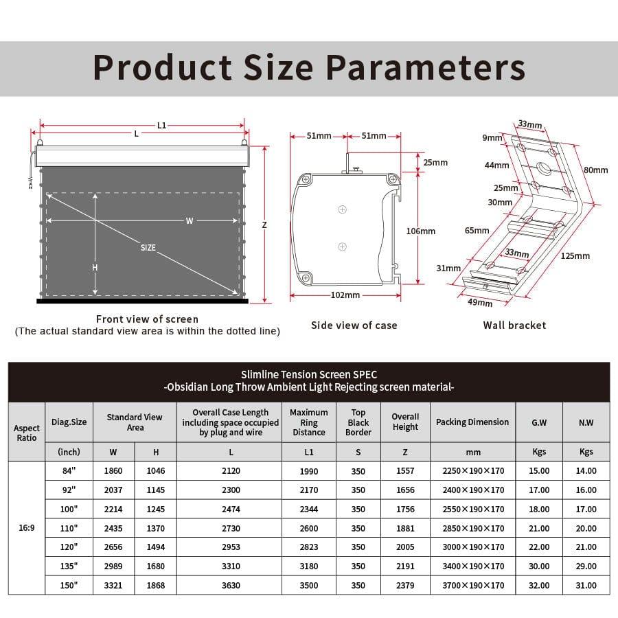 VIVIDSTORM 3D ALR Slimline Motorized Tension 3D(high gain) Obsidian Long Throw ALR Projector screen
