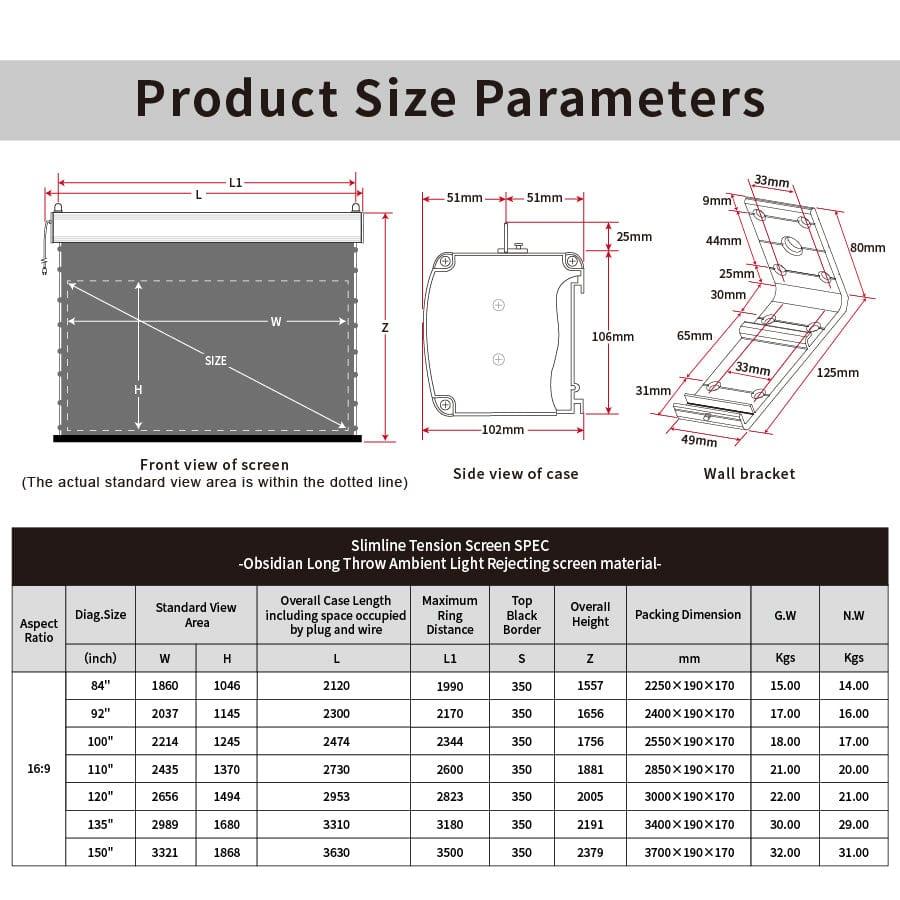 VIVIDSTORM ALR Slimline Motorized Tension Obsidian Long Throw ALR Projector screen