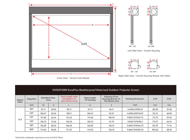 VIVIDSTORM DuraPlus Weatherproof Motorized Outdoor Projector Screen