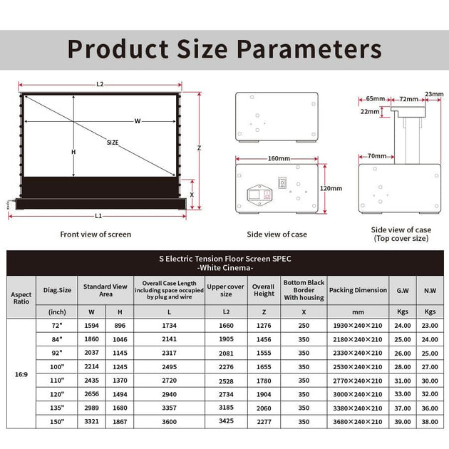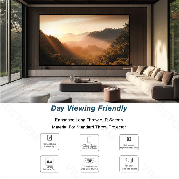 VIVIDSTORM S Fusion ALR Motorized Tension Floor Rising Enhanced Long Throw ALR Projector Screen