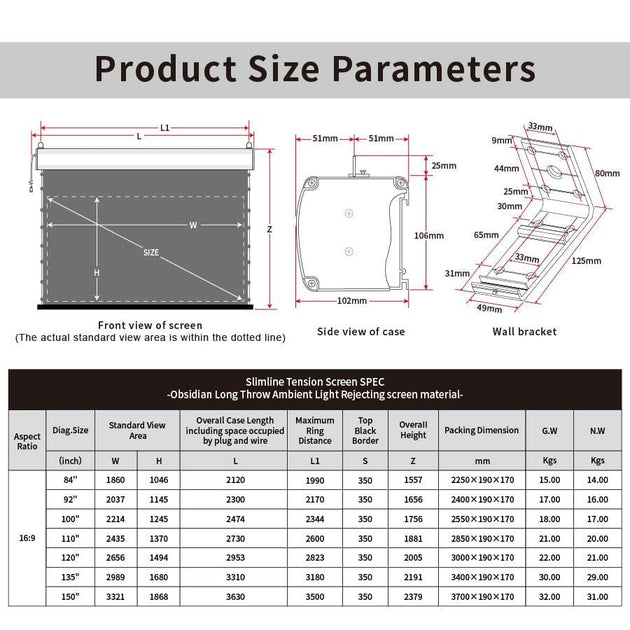 VIVIDSTORM ALR Slimline Motorized Tension Obsidian Long Throw ALR Projector screen