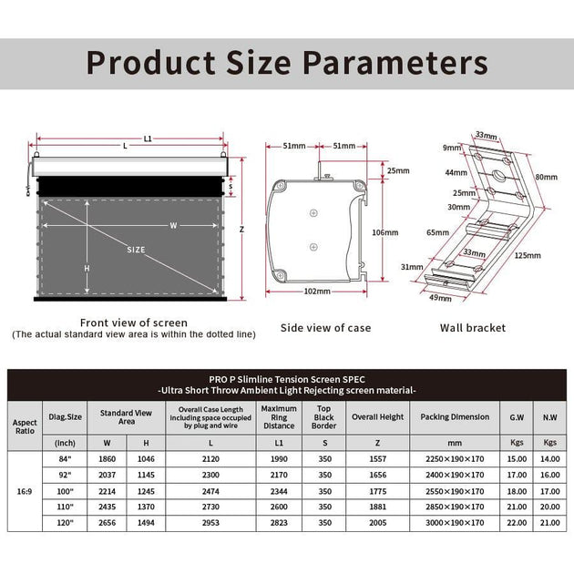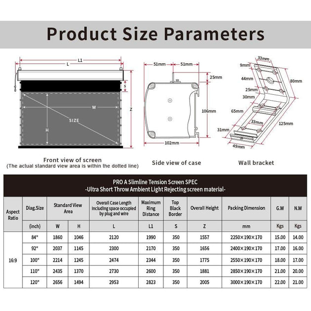 VIVIDSTORM 130" PRO/PRO A/PRO P/PRO PA Plus Slimline Motorized Tension UST ALR Projector Screen