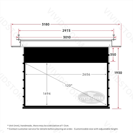 VIVIDSTORM S 3D ALR Motorized Tension Floor Rising 3D Obsidian Long Throw ALR(high gain) Projector screen