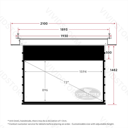 VIVIDSTORM PHANTOM Recessed In-Ceiling Motorized Tension White Cinema Projector screen
