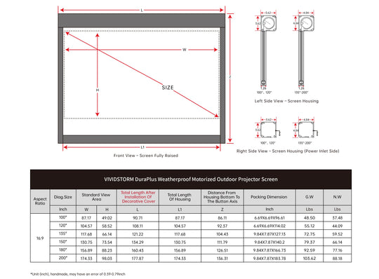 VIVIDSTORM DuraPlus Weatherproof Motorized Outdoor Projector Screen
