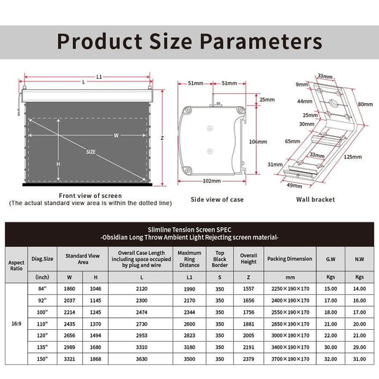 VIVIDSTORM ALR Slimline Motorized Tension Obsidian Long Throw ALR Projector screen