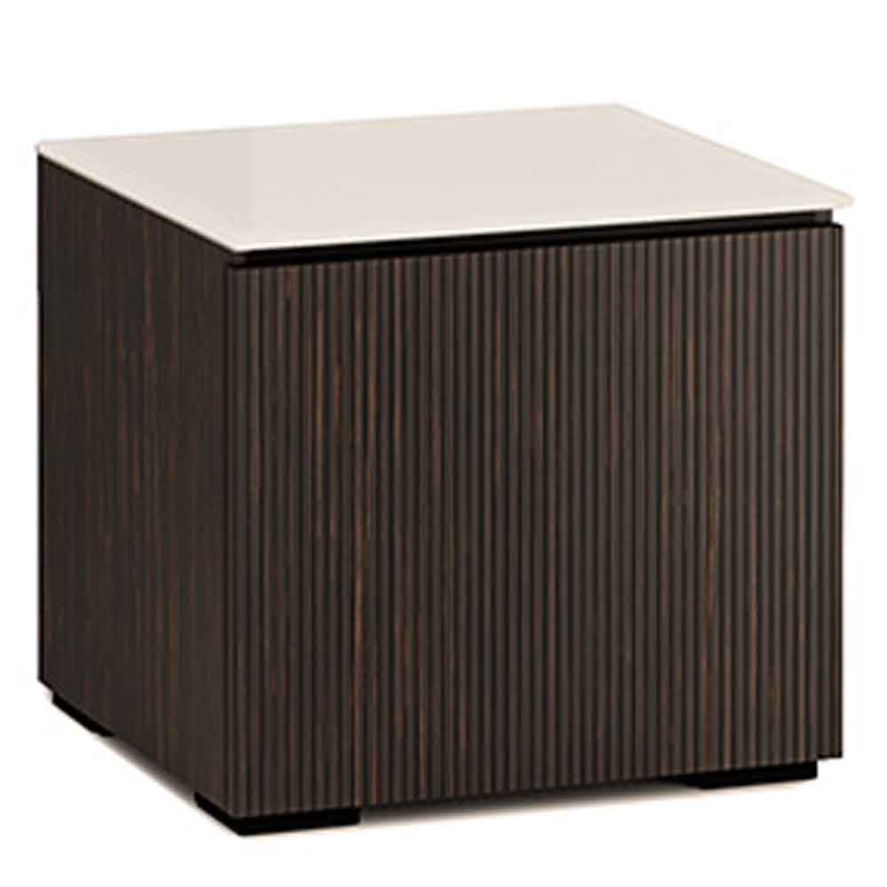 Crafted with meticulous attention to detail, the Manhattan Media Cabinet features a vertical, striped textured pattern in an Ebony Maro or Medium Walnut finish. Taupe Etched Glass Top brings a soft, matte taupe finish that offers a warm, non-reflective surface—simple yet rich in tone and sophistication. The Black Glass Top provides a sleek, reflective surface that delivers a clean, modern aesthetic.